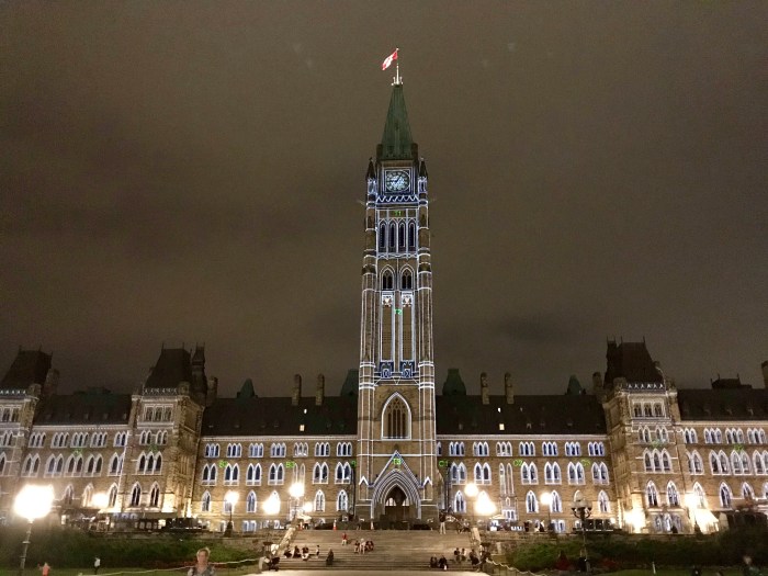 … und lassen uns dann noch ein wenig durch die nähere Umgebung (Wellington Street bis zum Justizpalast und dann zurück durch die Fußgängerzone) treiben. Unser erster Eindruck: Ottawa kann sowohl alt als auch modern!