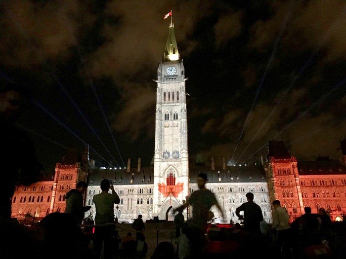 Danach chillen wir eine Runde im Hotel, bevor wir uns abends wieder raus wagen. Die „Northern Lights“ warten auf uns! Wie sich herausstellt, ist die halbstündige Lightshow über die Geschichte Kanadas der Hammer! Wir sehen großzügig darüber hinweg, dass für unseren europäischen Geschmack stellenweise etwas zu viel Pathos mitschwingt, und erfreuen uns an der wirklich gut gemachten Präsentation.