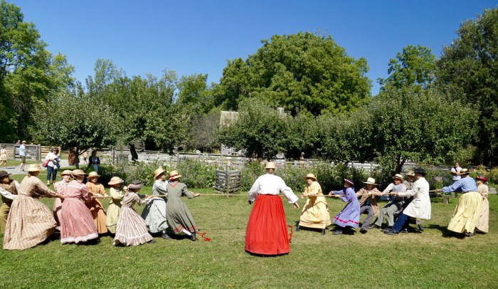Sowohl von der Struktur als auch von den Einrichtungen her entspricht es einer typischen ländlichen Kleinstadt Ontarios um 1860. Dorfkirche, Bäckerei, Schuhmacherei, Käsemanufaktur, ein wasserbetriebenes Sägewerk, Getreidemühle, Dorfschule, Hotel, Pferdeställe, Zeitungsdruckerei und vieles mehr – es fehlt an nichts! Im Restaurant werden Speisen nach alten Rezepten hergestellt. Sowohl die Käserei als auch die Bäckerei erwirtschaften bis heute Umsatz: sie verkaufen die live vor Publikum hergestellten Waren sowohl im Museumsgelände als auch an Kunden in der Umgebung. „Zeitgenössisch“ gekleidete „Bewohner“ informieren gerne über „ihre“ Zeit im kolonialen Canada und suchen oft auch von sich aus das Gespräch mit den Besuchern.