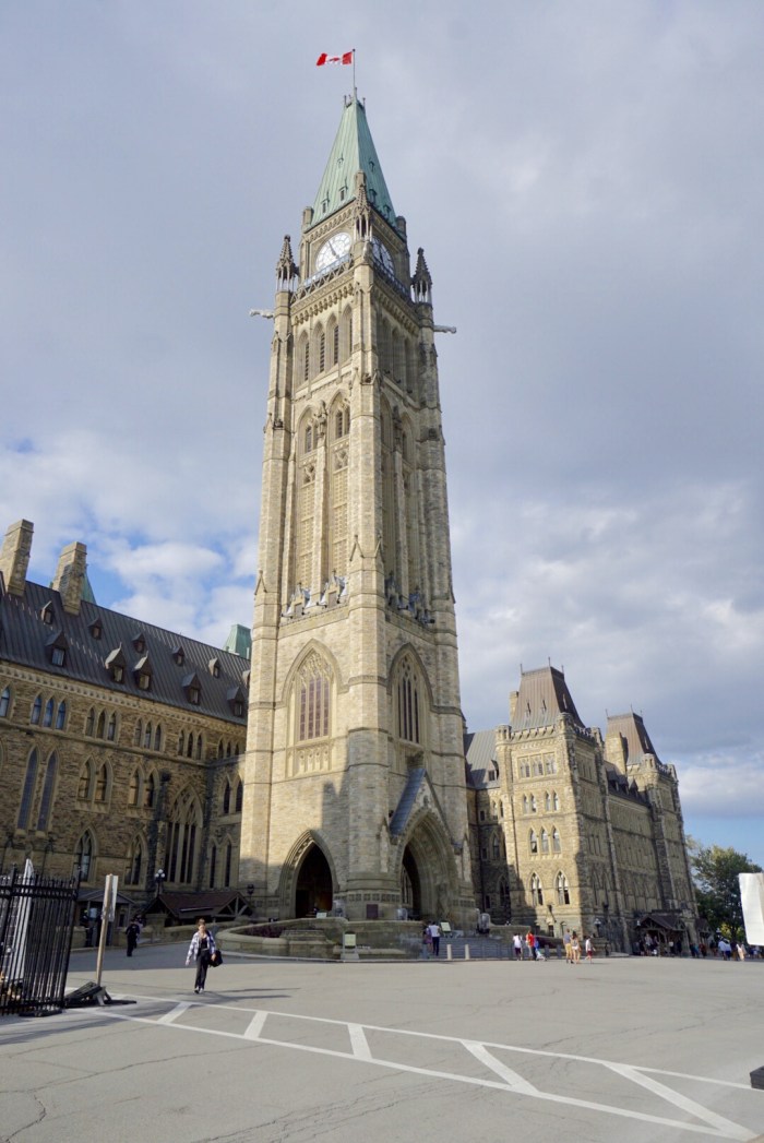 Der Check In verläuft flott, freundlich und unkompliziert. Und so deponieren wir nur schnell unser Zeug im Hotelzimmer und sind im Handumdrehen wieder auf der Piste. Dieses Mal natürlich zu Fuß. Wir wohnen hier sehr zentral in Laufweite zum Parliament Hill, der auf einer Klippe am Südufer des Ottawa River buchstäblich über der Stadt thront, wie es sich für seine politische Bedeutung gehört 😎. In Ottawa wird eben regiert, und nicht in Industrieanlagen malocht. Der beeindruckende Gebäudekomplex hat euch schon auf dem heutigen Titelbild begrüßt, das dieses Mal zur Abwechslung von Stefan stammt. Ich erkenne neidlos an, dass sein Panorama in dem Fall besser gelungen ist als meins 😘. Und da ich gerade festgestellt habe, dass mein WordPress das schöne Foto seitlich abschneidet (zu breit fürs Titelbildformat), darf es hier gleich noch mal auftreten: