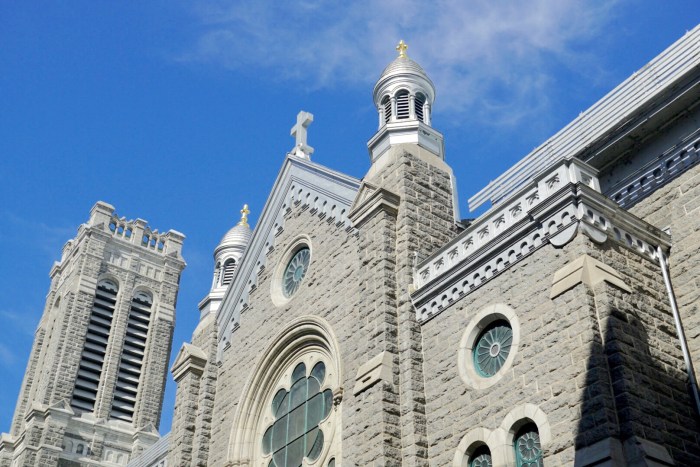 … bewundern die wunderschöne Kirche, die sich zwischen all den Läden behauptet, …