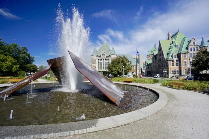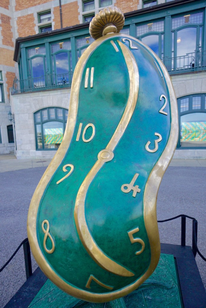 Oben angekommen, landen wir direkt auf der Terrasse Dufferin – weil sie so schön ist, darf sie heute das Titelbild zieren – und vor dem Château Frontenac. Beide habe ich euch gestern schon vorgestellt. Was dabei jedoch unterging, war der Tanz der Zeit. Das darf nicht passieren und wird hiermit schnellstens nachgeholt.