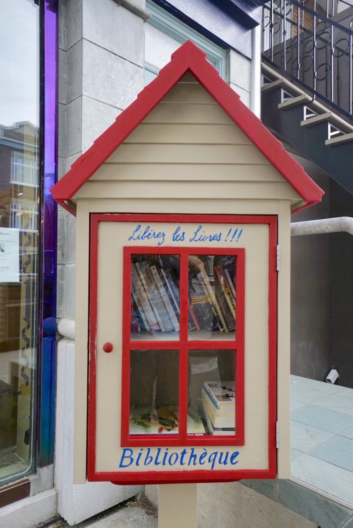 Der 801er Bus bringt uns bequem zum etwas außerhalb gelegenen Musée des Beaux Arts. Auf dem kurzen Fußweg von der Bushaltestelle zum Museum bummeln wir durch die charmante Avenue Cartier, die nicht nur nette Läden und Cafés, sondern auch Kostenloses für geneigte Leseratten zu bieten hat.