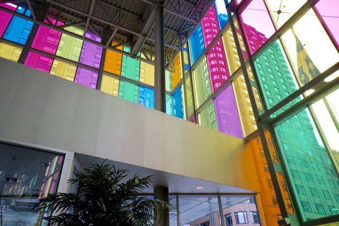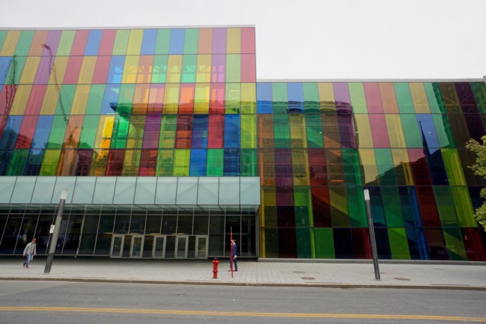 Einmal quer über die Straße, und schon fallen wir über das Convention Center mit seiner wunderbar bunten Fassade.
