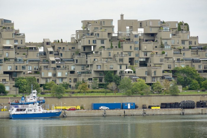 … über modernes Wohnen (hier die preisgekrönte, gekonnt verschachtelte Anlage Habitat 67 von Moshe Safdie aus der Ferne abgelichtet) …