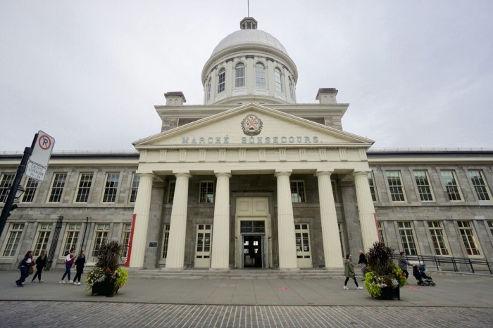 Wir schauen noch kurz in die ehemalige Markthalle Marché Bonsecours, die heute vornehmlich als Ausstellungshalle genutzt wird und schön anzusehen ist. Platz für diverse Restaurants und Läden hat sie auch. Wenn denn die Bauarbeiten erst mal wieder beendet sind 😅.