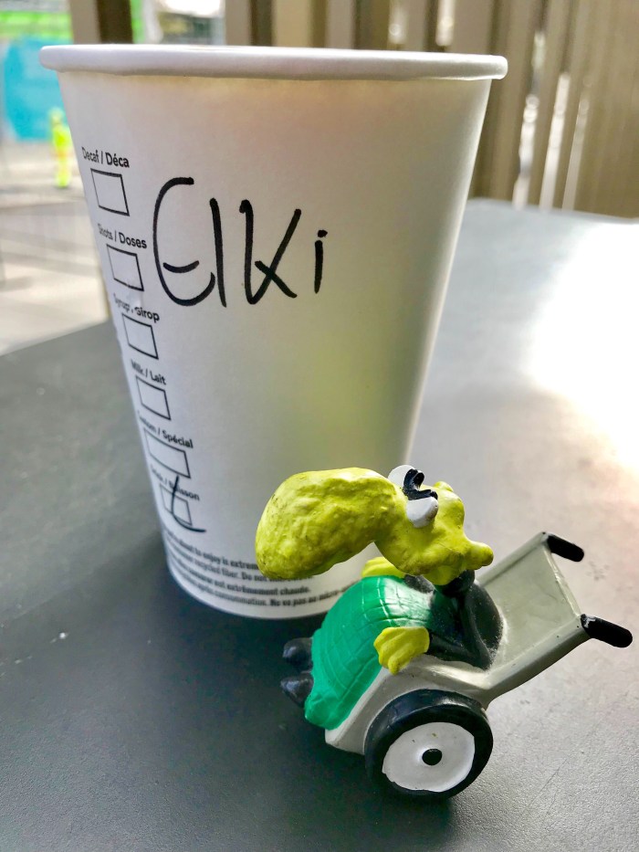 Die Sonne empfängt uns vor der Tür mit 23 Grad und leichter Schwüle. Da braucht der Grüne doch erst einmal einen stärkenden Kaffee! Er scheint zu ahnen, dass heute ein großes und sehr abwechslungsreiches Programm auf uns und damit auch auf ihn wartet.