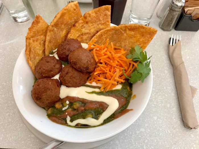 @ Bowl: Ich habe mal die Beschreibung aus der Speisekarte kopiert, da ich die Details nicht mehr im Kopf habe: organic brown rice, chickpea & potato curry, pakoras, paratha, mint & tamarind chutneys, garnished with carrot & coriander