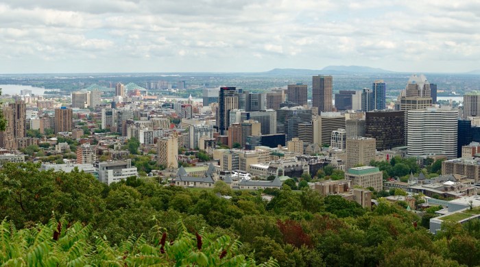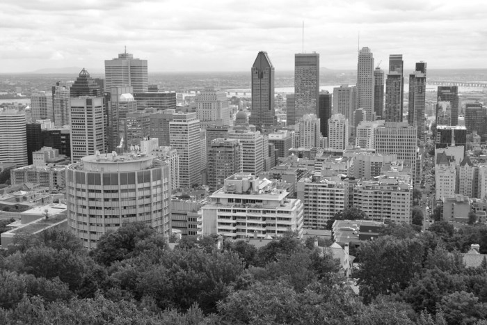 Nun aber hoch mit uns! Über den Treppenzug, der am südlichen Rand des Parks an der Avenue de Pins beginnt, schrauben wir uns nach oben. Nun befinden wir uns mitten in Montréals größtem Park, der übrigens vom gleichen Landschaftsdesigner wie der Central Park in New York angelegt wurde. Am oberen Ende der Treppen angelangt, sind es nur noch wenige Schritte bis zum Kondiaronk Lookout. Der nach einem Huronen-Häuptling benannte Aussichtspunkt bietet einen geradezu phänomenalen Blick auf die Stadt und ihre Umgebung! Das heutige Titelbild ist ebenfalls dort entstanden.