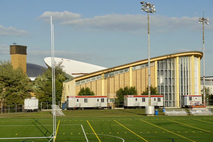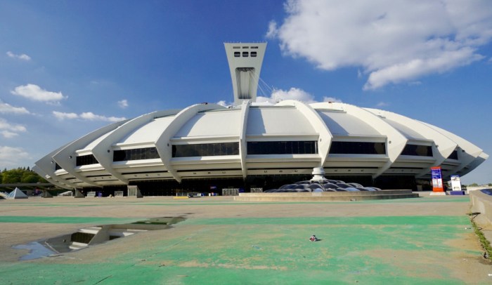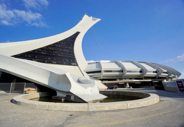 165 Meter über dem Stadion ragt der spektakuläre, um 45 Grad geneigte „Schiefe Turm von Montréal“ in den Himmel. Weil der Turm nicht rechtzeitig zu den Spielen fertig wurde, ließ sich das Dach des Stadions nicht wie geplant über Seilzüge wie an einem Kran öffnen. Sagenhafte 11(!) Jahre später – der BER lässt grüßen – wurde der Turm fertiggestellt und mutierte zu einer der Hauptattraktionen der Stadt. Ein Aufzug klettert außen an ihm entlang und katapultiert willige Besucher nach oben auf die Aussichtsplattform.