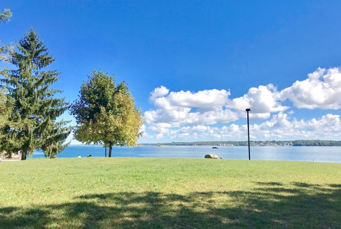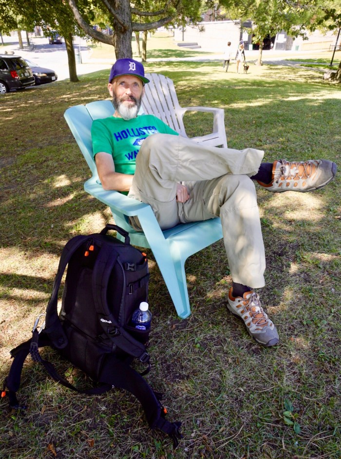 Als wir an einer Fußgängerampel auf Grün warten, spricht uns ein netter Typ an und begrüßt uns herzlich in seiner Stadt. Dann outet er sich als der Bürgermeister von Brockville, David Henderson. Und so kommen wir für eine ganze Weile nicht über die Straße. Es dauert eben, bis wir komplexe Themen wie Berlin, Sport, Umwelt in Brockville und Rückkehr verschwundener Tierarten im Lawrence River sowie das nach 9/11 komplizierter gewordene Verhältnis zwischen Kanada und den USA erörtert haben.