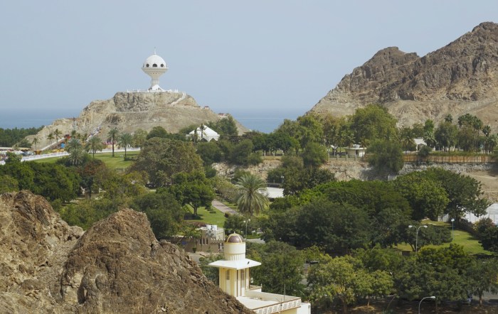 … 1970 über das Land gezogen ist. Doch dazu an anderer Stelle mehr. Jedenfalls wuchs Muscat seitdem dank der zahlreichen raumgreifenden Bergrücken des Hajargebirges, die die Stadt charmant zerstückeln, vor allem in die Länge. Heute dehnt sie sich mehr als 100 Kilometer von den Buchten ausgehend über die diversen Vororte aus. Man spricht von der Stadt deshalb auch vermehrt eher von der Hauptstadtregion als von Muscat.