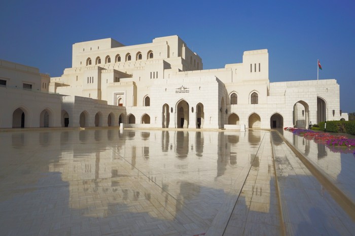 Sultan Qaboos ist ein glühender Verehrer von Klassischer Musik und der Opernwelt. Und so ordnete er per Dekret den Bau des ersten Opernhauses auf der Arabischen Halbinsel an. 2011 wurde der beeindruckende Bau, über dessen Baukosten bis heute dezent geschwiegen wird, eröffnet. 1.100 Plätze bietet dieser Musiktempel, den man vormittags im Rahmen von Führungen auch innen besichtigen kann. Die Akustik soll sensationell sein, so dass die aus Deutschland stammende Orgel voll zur Geltung kommt. Die Bühnentechnik ist komplett auf Schienen gelagert. So ist ein problemloser Wandel von Konzerthalle zu Theaterbühne möglich.