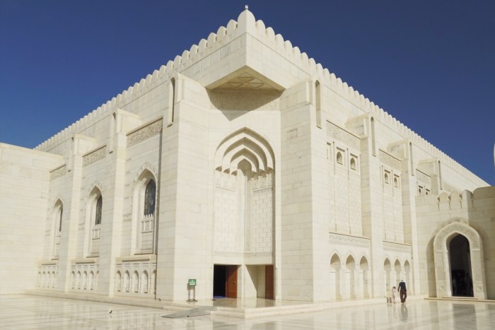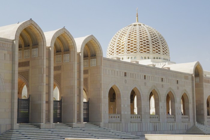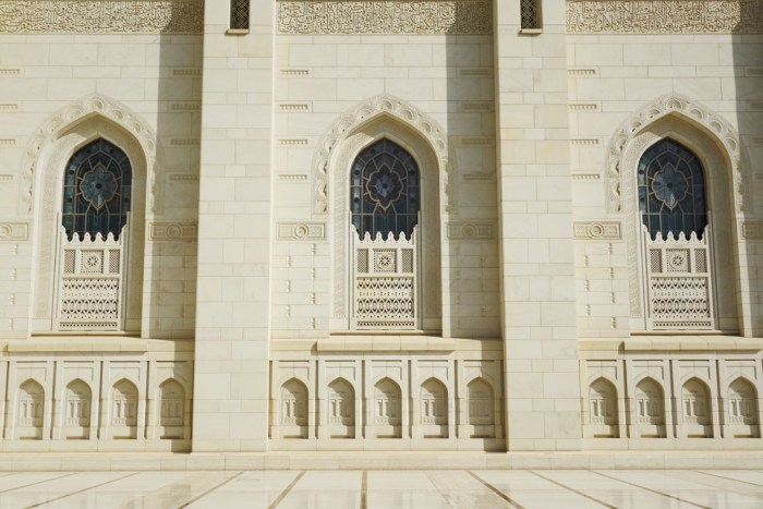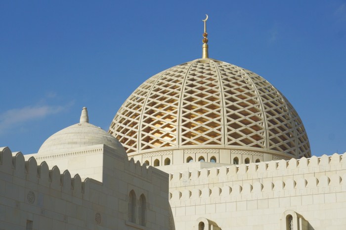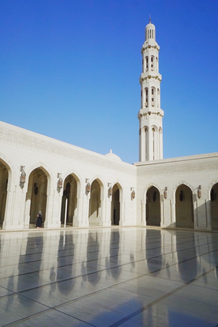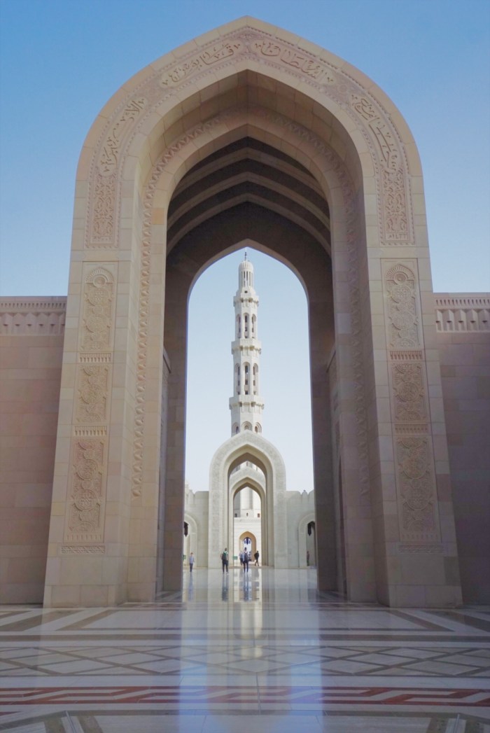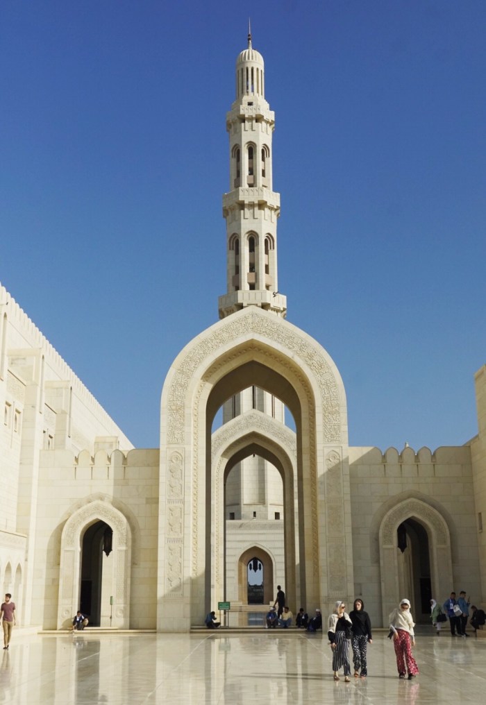 Die kurze Fahrt geht schnell vorbei, und schon stehe ich vor Muscats Sehenswürdigkeit Nummer Eins, der Großen Sultan-Qaboos-Moschee.