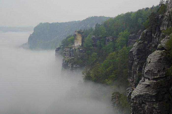 3. Wow! In Sachen Aufstieg/Leitern setzt ihr hier ja nochmal einiges drauf! Wieso heißen die Dinger denn Schramm- und Affensteine? Sieht fast beeindruckender aus als die Bastei, ist aber wahrscheinlich nicht so berühmt, weil der Weg so beschwerlich ist. Der Nebel war allerdings ein Highlight. Tolle Stimmung!