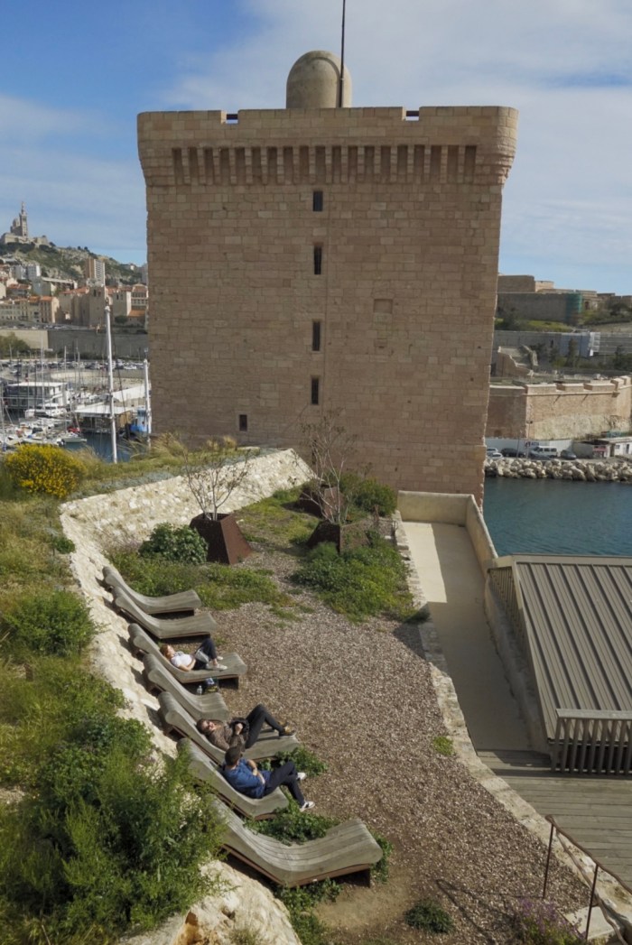 Seitenwechsel. Auftritt Fort St.-Jean. Dieses bietet nach der nun vollendeten Sanierung dem MuCEM weitere Ausstellungsräume und dem Outdoor-Besucher einen spannenden Rundgang durch das abwechslungsreiche Gelände mit genialen An- und Aussichten.