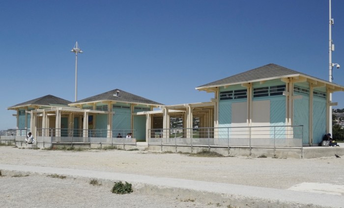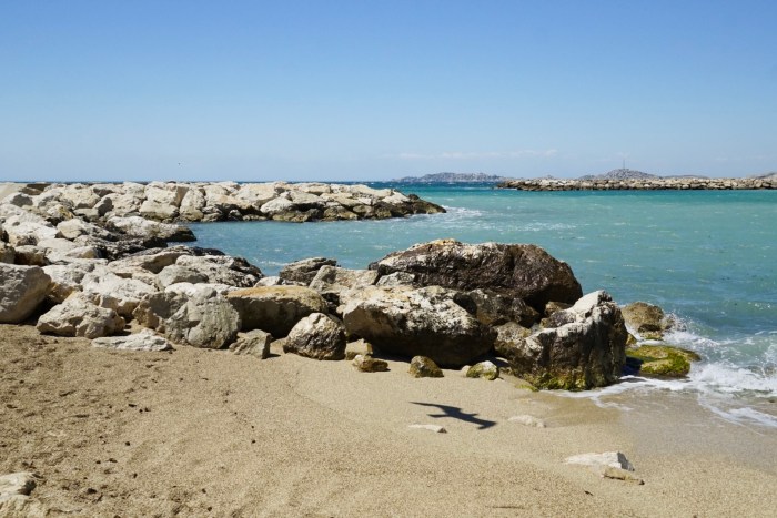 Wieder unten, geht es mit dem Bus zurück zum Strand. An diesem krass stürmischen Tag ist am Abschnitt namens Parc Balnéaire du Prado so gut wie nichts los. Dieser Strand wurde der Stadt übrigens nicht in die Wiege gelegt, sondern künstlich angelegt. Das fein vermahlene Gestein, das beim Bau der beiden U-Bahnlinien abfiel, wurde kurzerhand hierher verfrachtet. Eine schlaue Maßnahme! Denn was nützt dem Volk Sonne und Meer, wenn keine Fläche zum Verweilen, Spielen und Flanieren da ist?