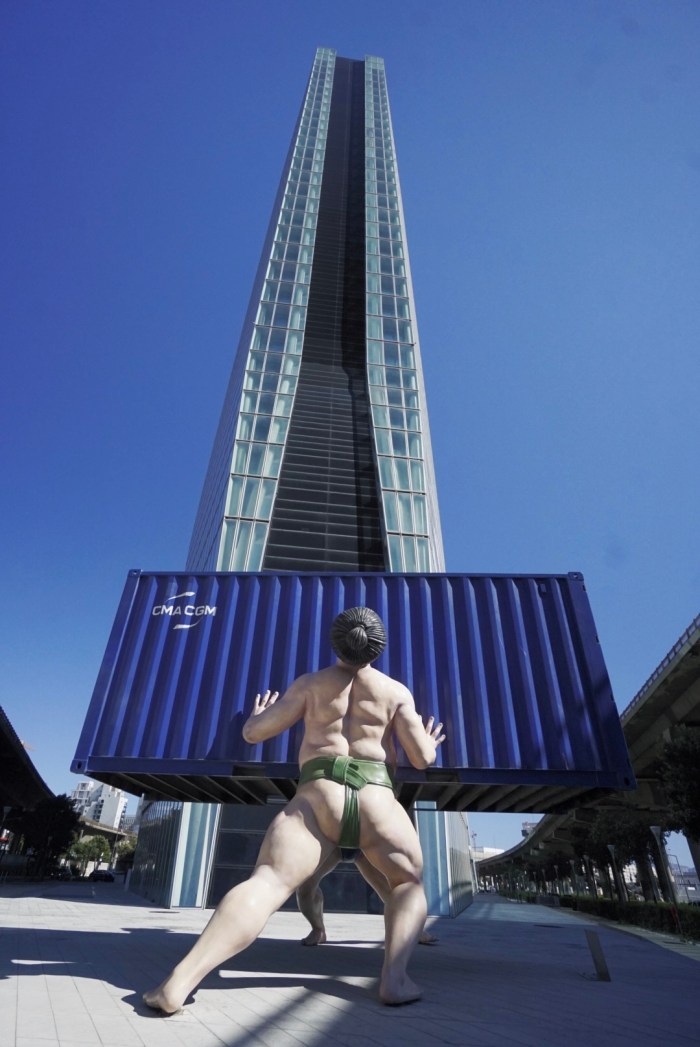 Der sehenswerte Turm beherbergt das Headquarter eines großen Unternehmens für Schiffscontainer. Passend zum Thema flankiert eine originelle Skulptur das Gebäude auf der Rückseite. Die beiden Sumo-Ringer haben euch schon auf dem heutigen Titelbild begrüßt. Hier geben sie euch noch eine Zulage!