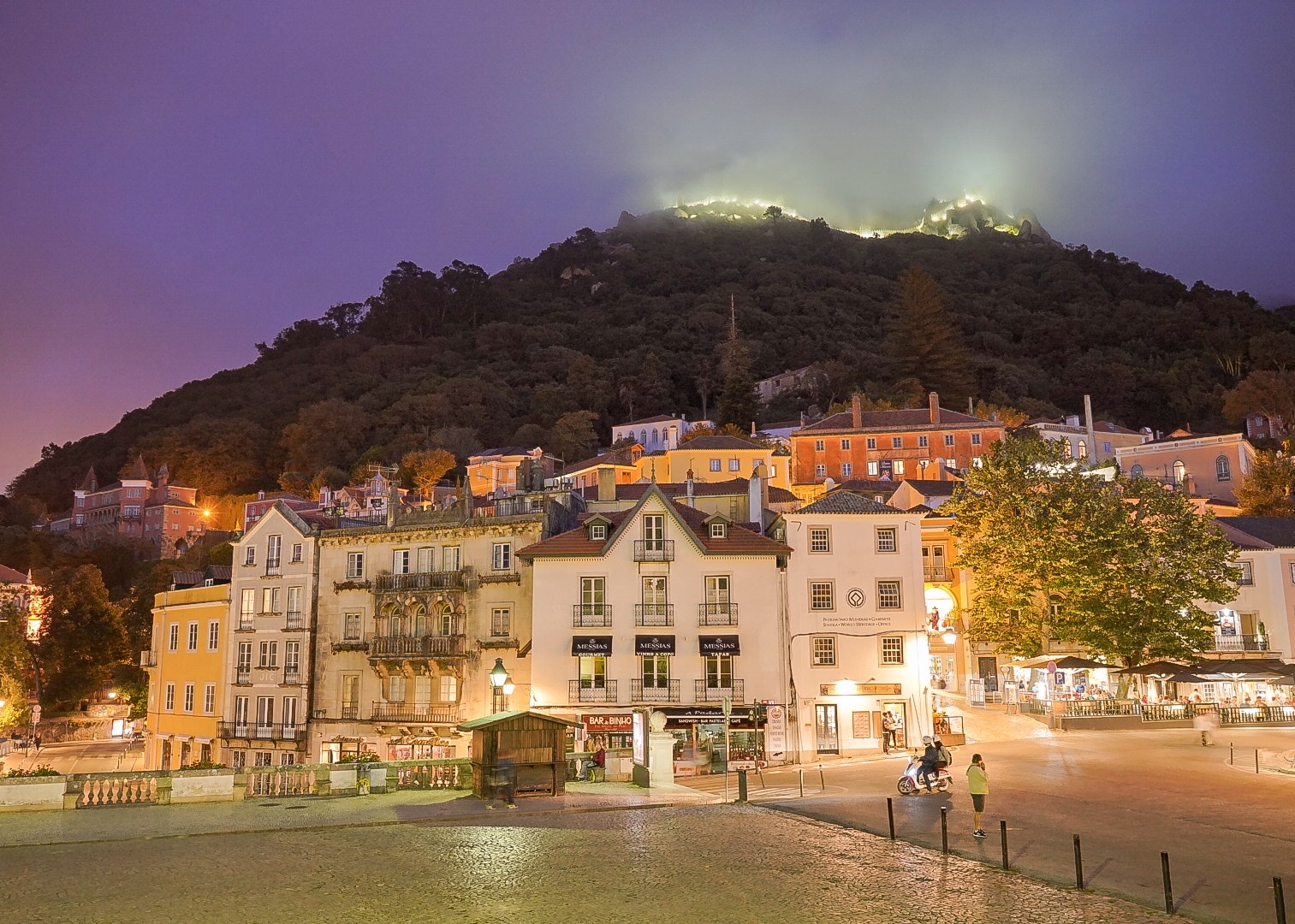Höchste Zeit für ein Abendessen im lauschigen Villa 6, wo uns ein leckeres veganes Mahl serviert wird. Unser anschließender kurzer Verdauungsspaziergang durch die Altstadt von Sintra gestaltet sich abends deutlich beschaulicher. Denn die Tagestouristen sind längst nach Lissabon zurückgekehrt. Stefan lässt es sich natürlich nicht nehmen, seiner Kamera eine Spätschicht zuzumuten. Hier zwei seiner Werke im romantischen Abendlicht.