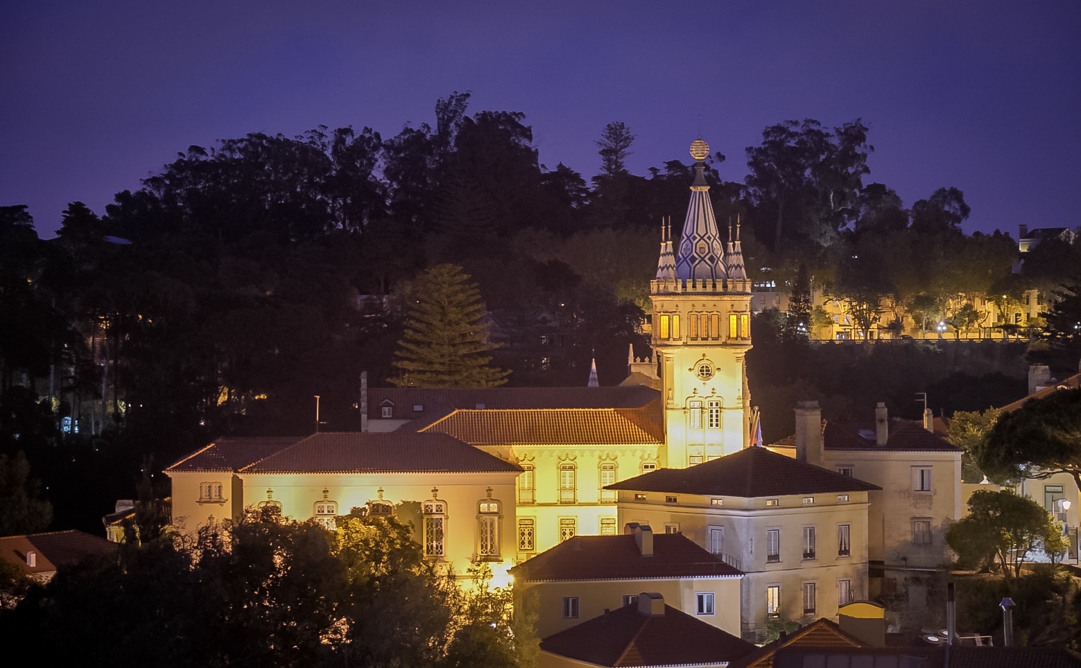 … und bewundern Details des Palácio Nacional de Sintra und die Aussicht von dessen Vorplatz aus.