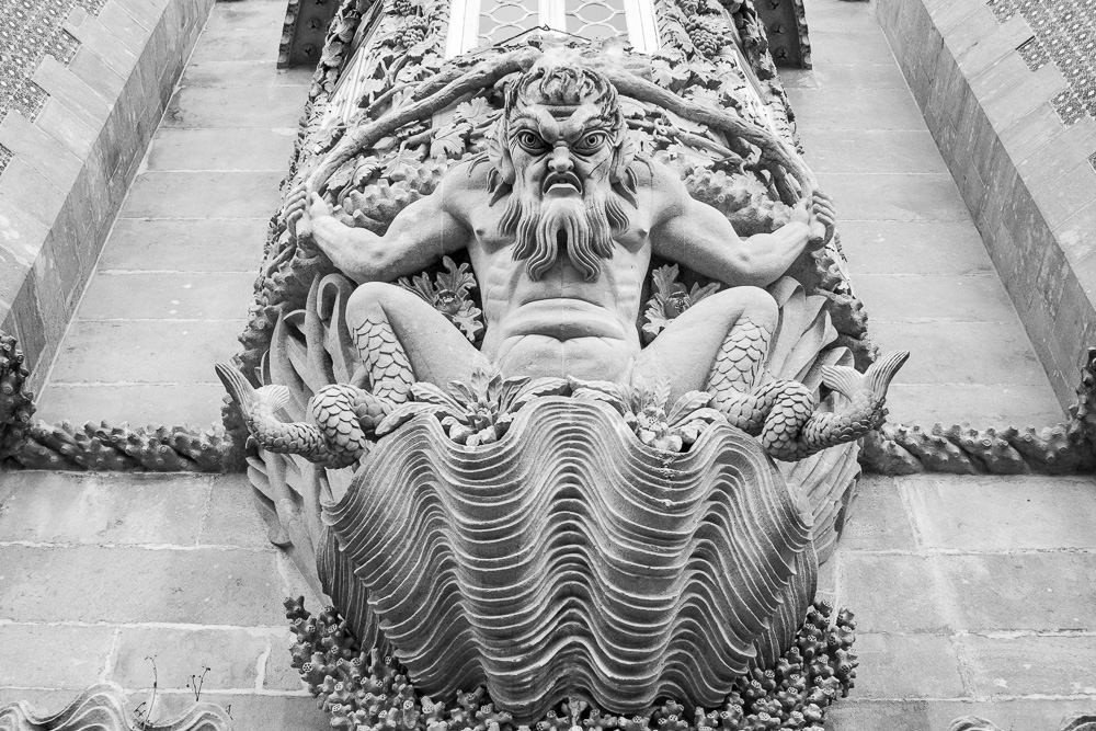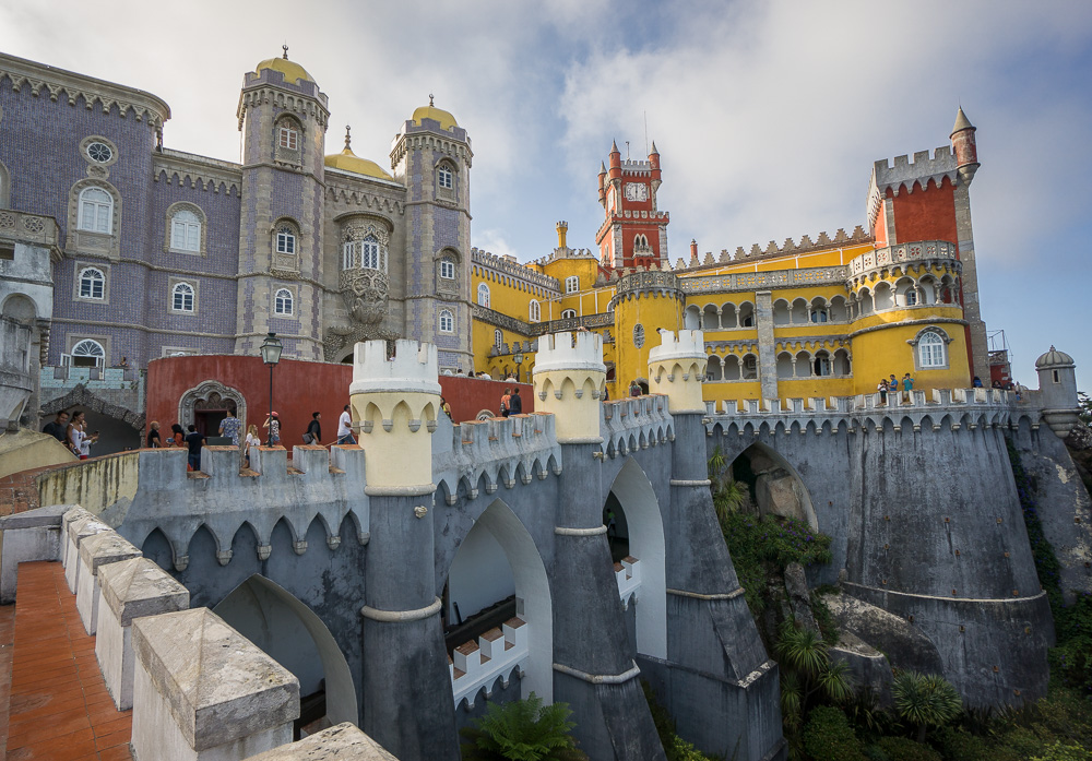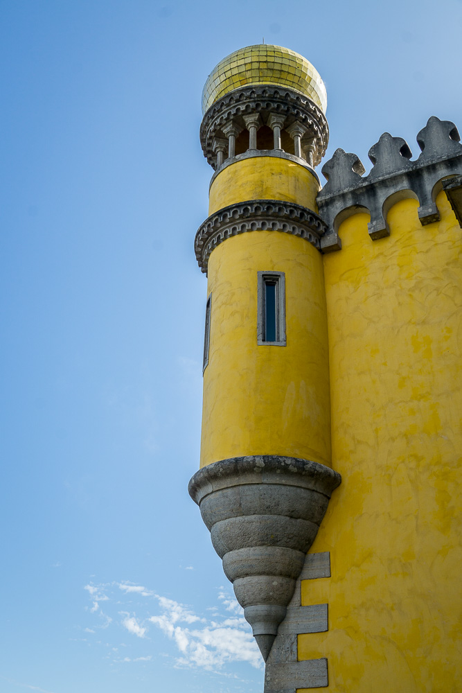 Und dann stehen wir vor dem Palácio da Pena, dem mit dem unausrottbaren Vergleich mit dem Schloss Neuschwanstein meiner Meinung nach Unrecht getan wird. Klar, der irre Stilmix aus allen erdenklichen portugiesischen und deutschen Baustilen ist gewagt, aber dennoch weniger kitschig geraten als das Vergleichsobjekt in Deutschland.