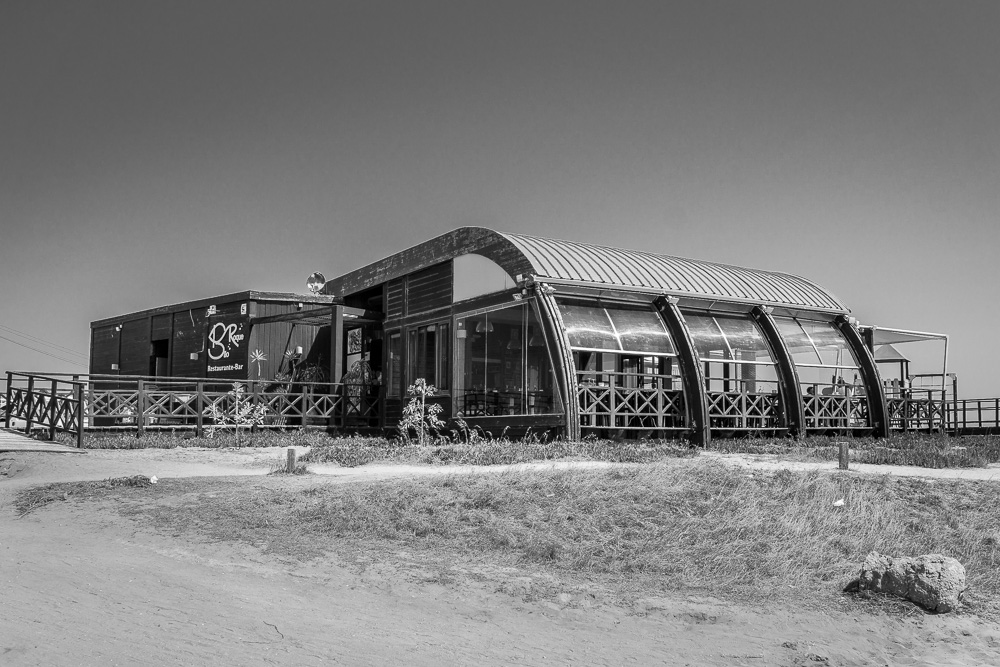 Stattdessen schauen wir uns ein wenig in der Ecke dort um und lassen uns zu dem einen oder anderen Foto inspirieren. Die Aussicht auf die Silhouette der Stadt und auf ein formschönes Restaurant in Strandnähe hat was!