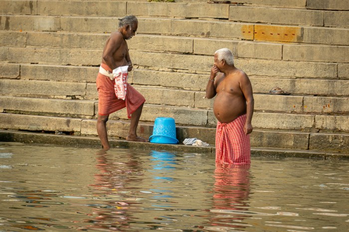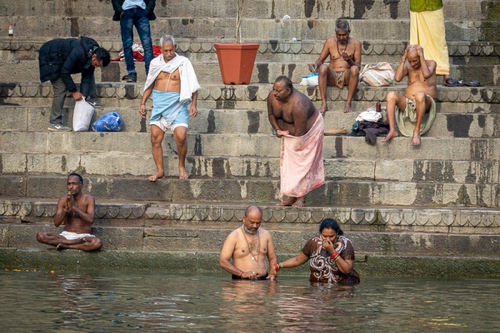 2. Tolle Bilder und sehr guter Text. Bei manchen Männern hätte man ja wirklich Angst, dass da ein (Hand-)Tuch verrutscht. Es gibt Sachen, die will man nicht sehen.😅 Schwer vorstellbar, dass Leute sich da waschen und „reinigen“, wo die Asche und Überreste von Toten hineingeworfen werden.🤢 Aber gut, andere Länder…