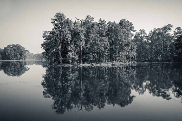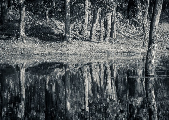 Nachdem die Öffentlichkeitsarbeit erledigt ist, spaziere ich gemächlich am Ufer entlang, drücke mal hier, mal da auf den Auslöser und genieße die gar nicht so harmlose Natur. Denn auch in diesem so unscheinbar daliegenden Gewässer tummeln sich – gut getarnt – die Krokodile.