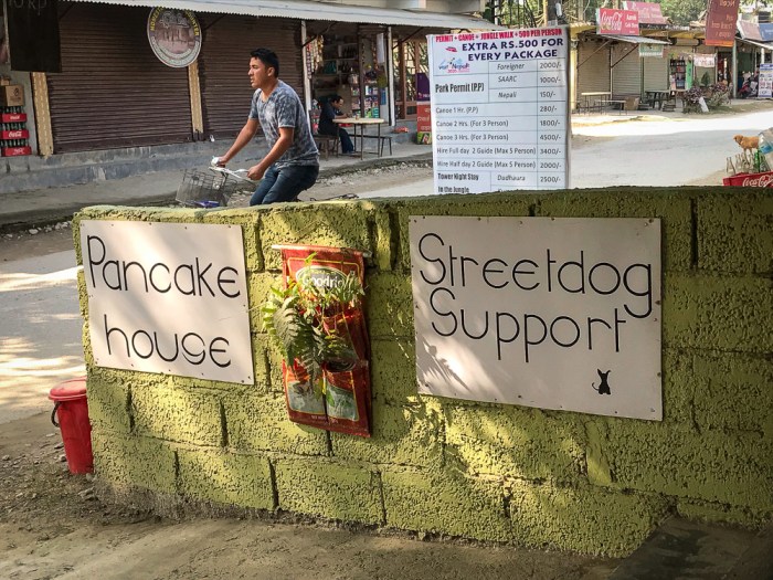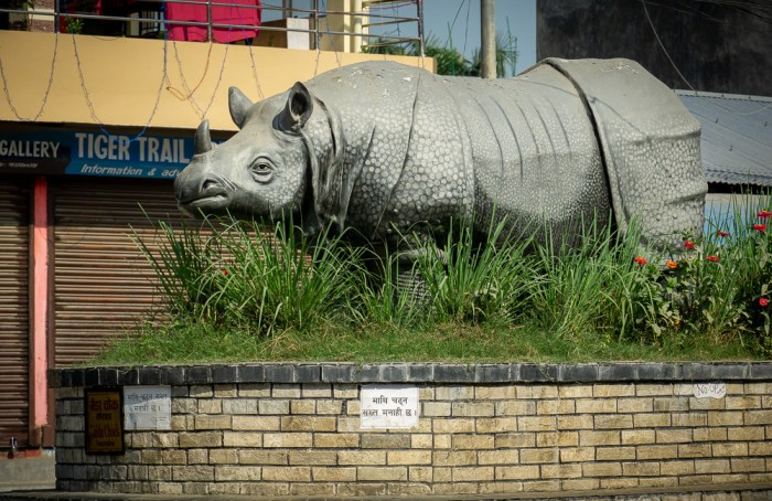 Am späten Vormittag jeepen wir zurück nach Sauraha. Ich lasse mich durch das überschaubare Örtchen treiben, lichte für euch mutig ein Nashorn auf dem Tiger Trail ab …