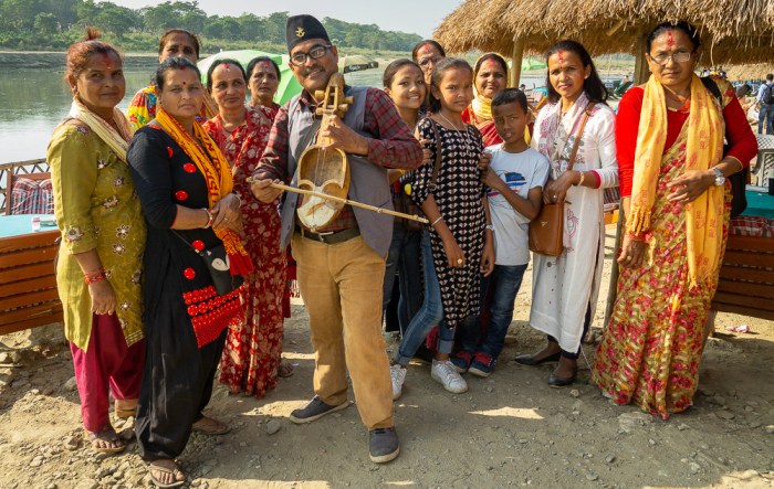 … erregt mit seiner Sarangi nicht nur meine, sondern auch die Aufmerksamkeit einer überwiegend aus Frauen bestehenden Gruppe, die ihn umringt. Als ich sie anspreche, gibt es kein Halten mehr! Sie stürzen begeistert auf mich zu und bringen sich in Stellung.