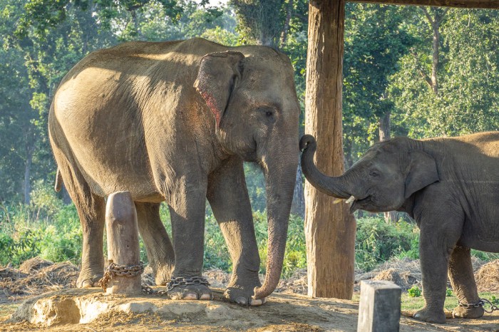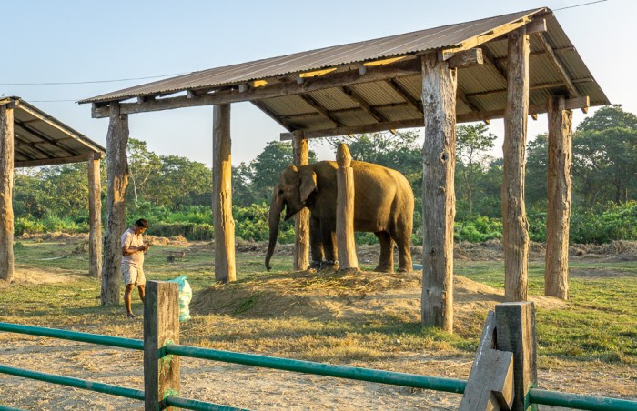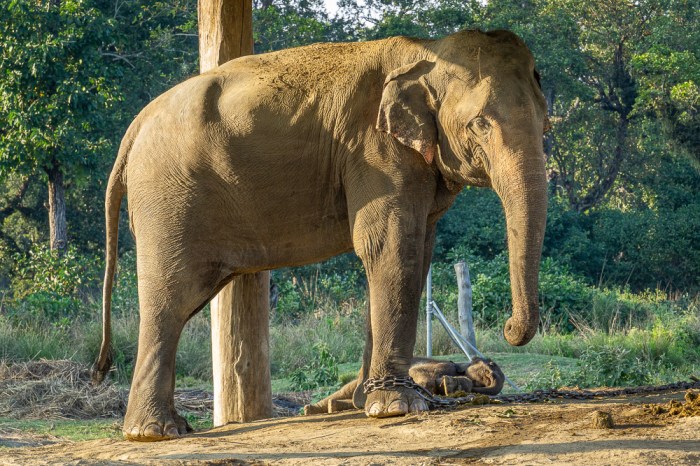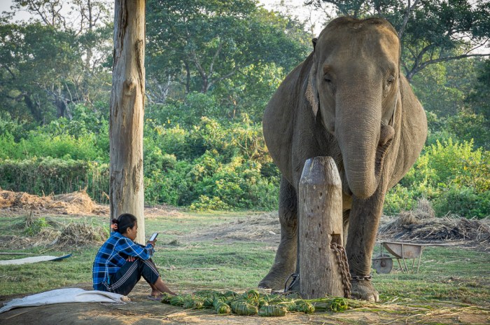 Einige Tiere zeigen ausgeprägte Anzeichen von Hospitalismus. Die Männchen werden zu Arbeitselefanten abgerichtet und im Wald bzw. Nationalpark eingesetzt, z.B. zum Aufspüren und Abtransportieren von toten Tieren. Man kennt sie hier auch unter der Bezeichnung „Regierungselefanten“. Private Besitzer von Elefanten bieten hingegen die von mir schon erwähnten Touristenbelustigungen mit Elefanten an.