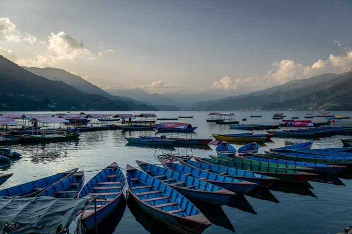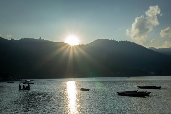 Na, wie gefällt euch Phokara? Ich finde das Städtchen trotz seines touristischen Flairs recht entspannt und charmant. Und seine Lage ist sowieso unschlagbar. Nach dem gemeinsamen Abendessen begebe ich mich bald in die Horizontale. Morgen muss ich sehr früh aus den Federn. Für heute ein letzter Gruß vom Phewa See im Abendlicht!