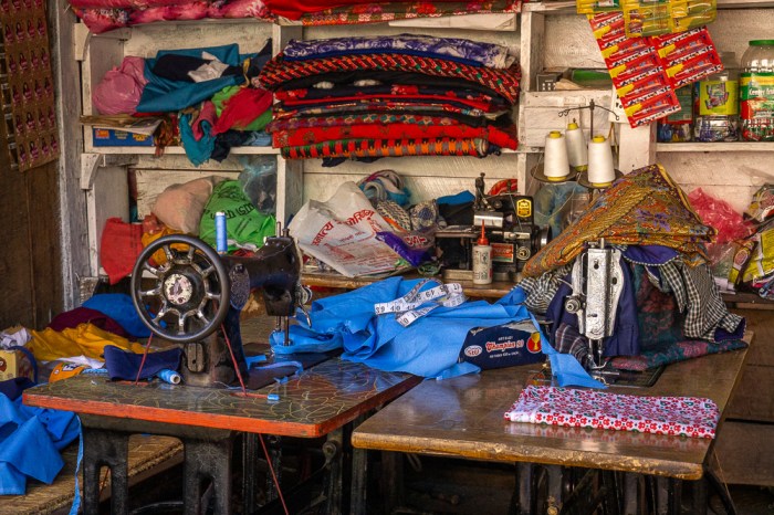 Die kleine „Schneiderei“ gefällt mir gut. Sieht man von den Wänden ab, so sieht es in einer Berliner Schneiderei fast ähnlich aus!