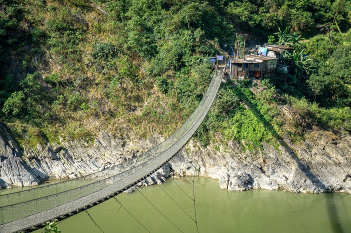 Zwischendurch ein etwas längerer Stopp, um den Hintern zu entlasten und die Füße zu bewegen. Jenseits der ansehnlichen Hängebrücke …