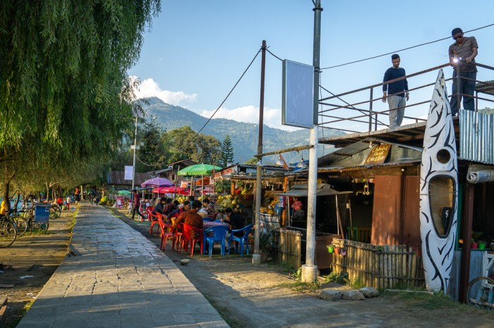 Heute bietet das Zentrum von Pokhara die gesamte Palette der üblichen touristischen Infrastruktur: Läden aller Art (mit deutlicher Konzentration auf Outdoor-Equipment), Restaurants und Cafés. Das Publikum ist bunt gemischt, jedoch mit dem gleichen Schwerpunkt wie die zuvor genannten Läden. Schließlich ist das Städtchen Ausgangspunkt vieler Trekkingtouren.