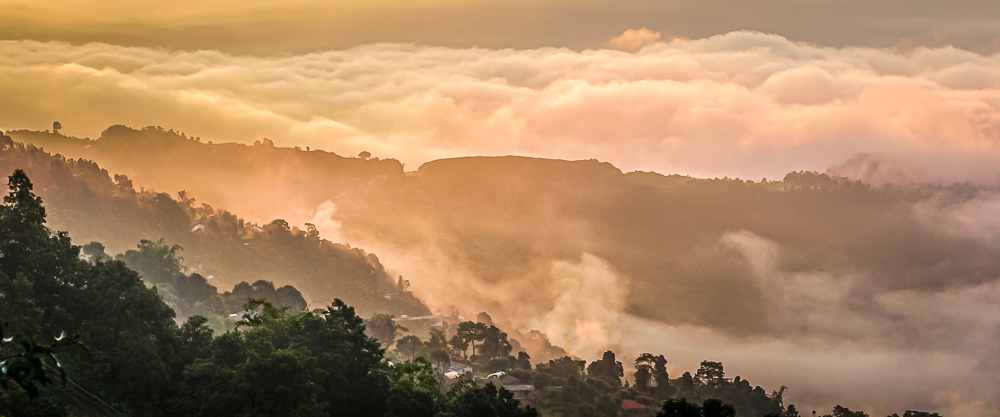 Dieses Naturschauspiel, bei dem der Nebel minütlich kommt und geht, plötzlich aus dem Nichts ein einzelner Gipfel angeleuchtet wird, während die anderen im Dunkeln bleiben, die Sonne langsam höher steigt, das Licht sich ändert – hach! Ich gehöre ja eher zu den nüchtern-sachlichen Zeitgenossen. Doch hier und jetzt bleibt mir wirklich fast die Luft weg.