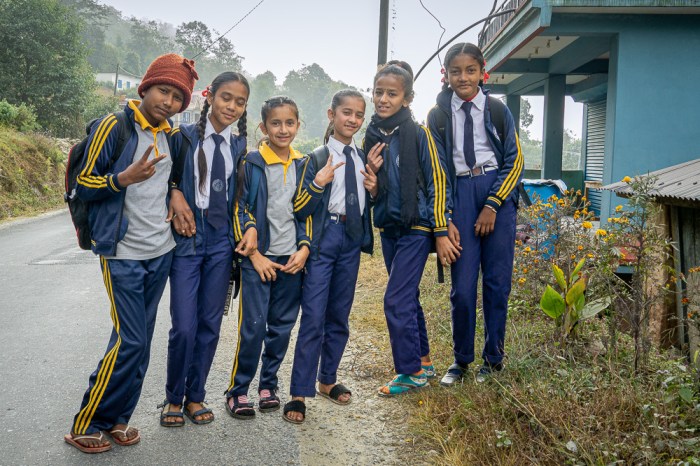 Als uns die Asphaltstrecke schließlich zu öde wird, greifen wir zu einem Mittel, das Wanderer mit etwas mehr Ehrgefühl womöglich als verwerflich empfinden würden. Doch wir haben Mut zur Lässigkeit! Die letzen drei Kilometer fahren wir per Anhalter 😅. Diva Elke logiert in der Fahrerkabine neben den beiden netten Nepalis, während die beiden anderen es sich hinten auf der offenen Ladefläche auf Zementsäcken gemütlich machen. Unbezahlbar die entglittenen Gesichtszüge zweier weiterer Mitreisenden, die wir kurz vor dem Ortseingang überholen!