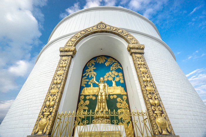… thront erhaben der Friedensstupa, der unbedingt einen Besuch lohnt. Buddhistische Mönche aus Japan haben ihn zur Förderung des Weltfriedens erbauen lassen. Weltweit haben sie noch einige andere Friedensstupas gestiftet.
