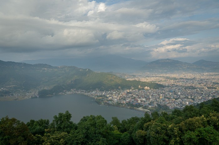 Runter in den Ort, rüber zum See, rein ins Boot. Am anderen Ufer angelangt, gestehe ich euch, dass weitere 300 Höhenmeter auf uns warten. Doch die Belohnung für die Mühen des Aufstiegs lässt nicht lange auf sich warten. Hoch oben über dem Phewa See und Pokhara …
