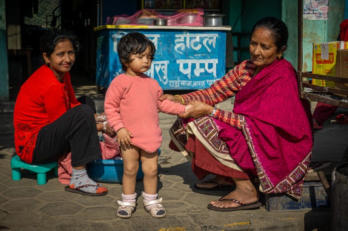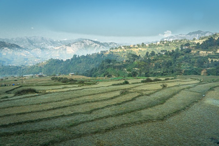 Zu einer gemäßigten Zeit brechen wir vormittags die imaginären Zelte in Pokhara ab und machen uns auf den Weg zum letzten Stopp auf dieser Reise. Schotterpisten, Serpentinen, halbwegs gute Asphaltstraßen: auf der gut 200 Kilometer langen Strecke ist von allem etwas dabei. Und ein Blick aus dem Busfenster lohnt durchaus.