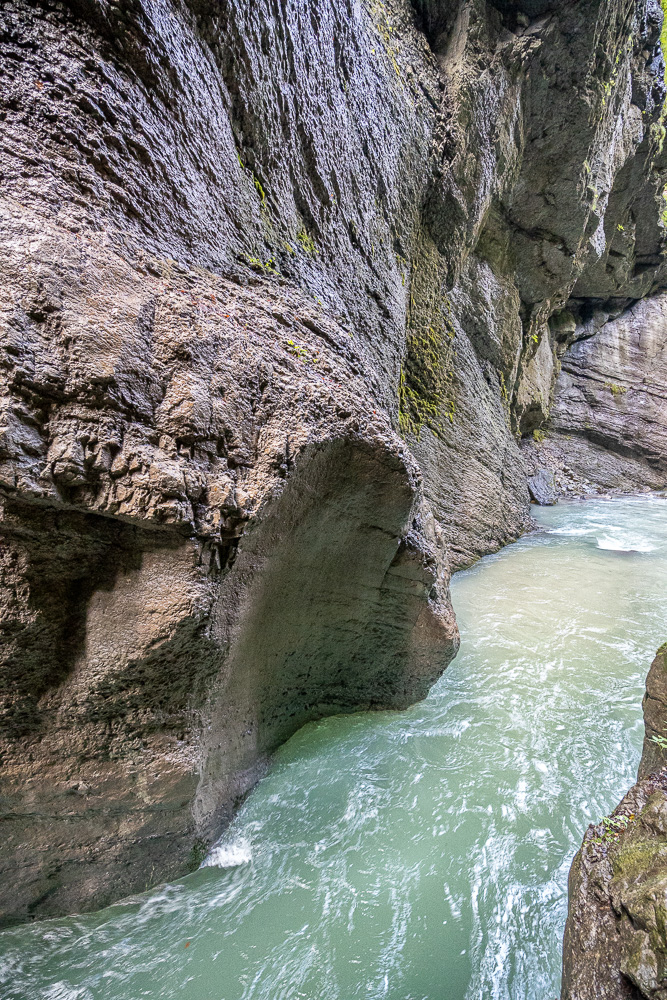 Der Weg ist sehr schmal. Und so drängeln und rempeln ständig Leute an uns vorbei, höchstens drei Sekunden, nachdem sie Durchlass gefordert haben. Sie hetzen durch die Schlucht, als gelte es, einen neuen Geschwindigkeitsrekord aufzustellen und die Goldmedaille im Sprint zu erkämpfen. Nun, wir genießen den Weg dennoch! Die Auswaschungen im Gestein, das hereinbrechende Licht, das tosende Wasser, dessen Geräuschkulisse in der schmalen Schlucht einen hervorragenden Klangkörper findet. Einfach toll, was die Natur hier geschaffen hat! Im Winter soll die Schlucht dem Vernehmen nach noch beeindruckender sein, wenn Schnee und Eis ihre temporären Spuren hinterlassen.