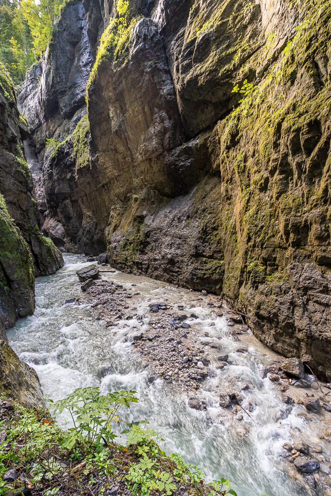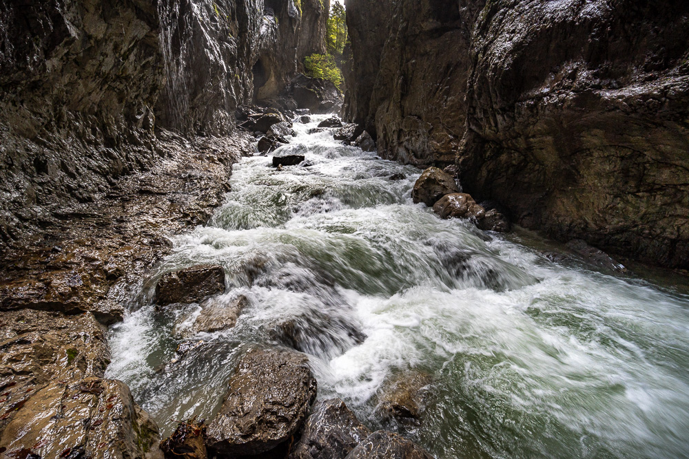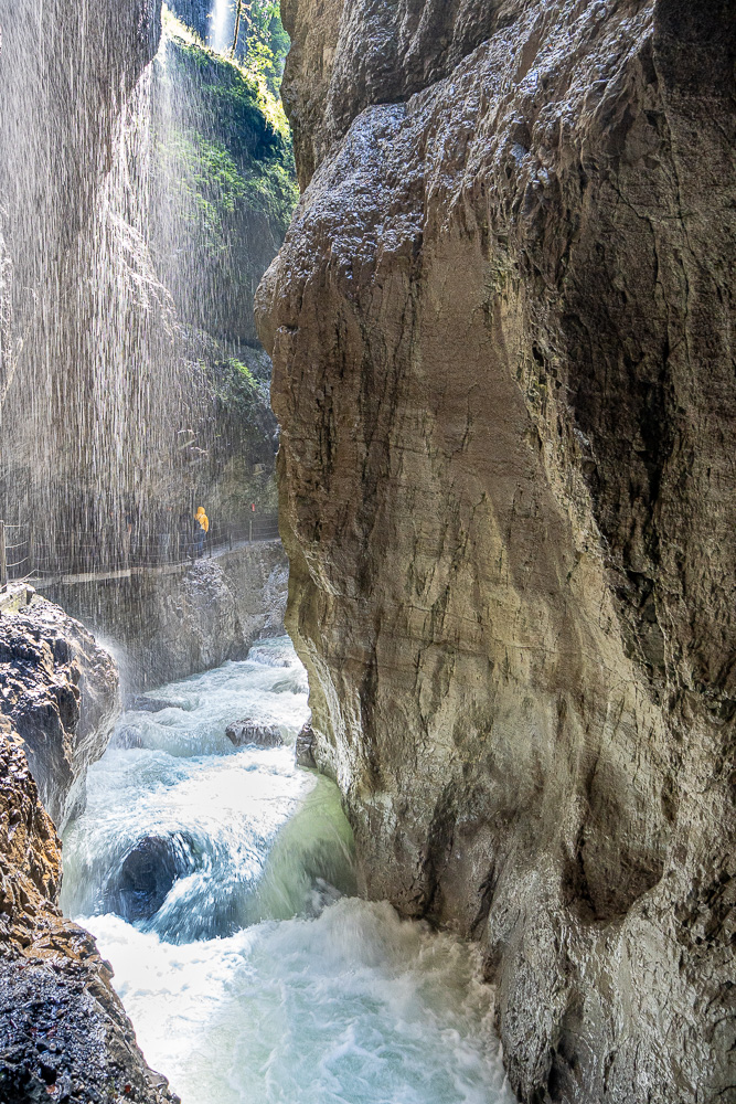 Die Klamm ist sehr beeindruckend, doch nicht ganz einfach zu fotografieren. Es ist dunkel, eng und nass. Noch schwieriger jedoch ist es, das sich auf 700 Metern Länge abspielende grandiose Naturschauspiel in Ruhe zu genießen! Dabei hält sich die Menge der Besucher heute durchaus in Grenzen. Doch die meisten Leute haben nicht einen Funken Geduld und Muße, auch nur fünf Sekunden zu warten, um sich und andere in Ruhe schauen, genießen und vielleicht hier und da ein Foto machen zu lassen. Dabei haben wir alle möglichen Voreinstellungen an den Kameras schon vorher erledigt, damit es schnell geht 😅.