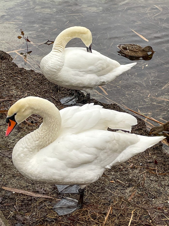 Deutlich mehr action ist da am Ufer! In aller Seelenruhe schwimmen, futtern und putzen sich Enten und Schwäne durch den Tag, völlig unbeeindruckt von der aufdringlichen Besucherin mit dem Handy in den Pfoten.