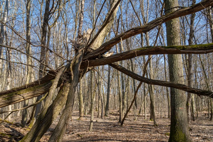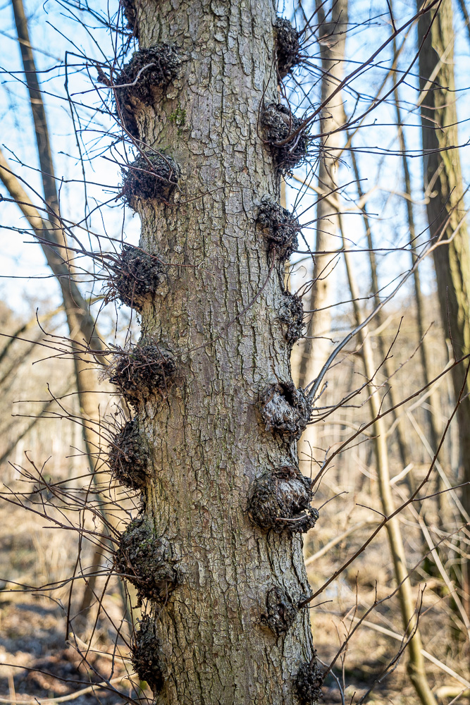 Ich mag ja das Kahle am winterlichen Wald. Wenn das ganze Grünzeug Weg ist, kommen die Formen der Äste viel besser zur Geltung. Aber natürlich finde ich den Wald auch schön, wenn die Bäume wieder ordentlich gekleidet sind!