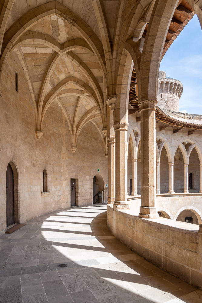 … hoch zur Burg führt. Die kreisrunde, ehemalige königliche Sommerresidenz Castell de Bellver diente später als Gefängnis und beherbergt heute das Historische Museum. Konzerte finden hier ebenfalls statt. Dann lasst uns mal ein wenig in dem sehenswerten Areal herumlaufen, der Burg aufs Dach steigen und schöne Perspektiven entdecken!