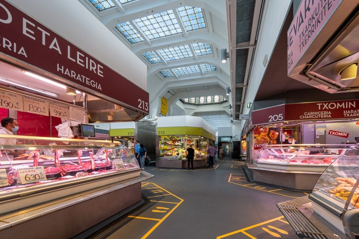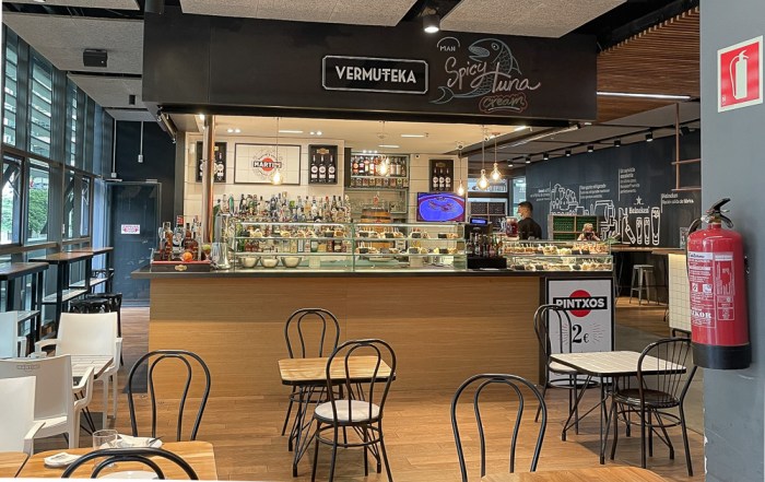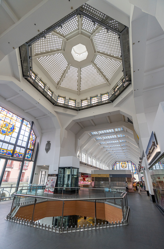 Auf meinem Rückweg komme ich direkt am Mercado de la Ribera vorbei. Diese sehenswerte Markthalle hatte ich euch von außen bereits in meinem Beitrag zu Tag 1 vorgestellt. Heute schaue ich sie mir von innen an und gönne mir dort als verspätetes Mittagessen – welche Überraschung! – ein paar Pintxos. Reges Marktgeschehen herrscht an diesem frühen Nachmittag nicht (mehr). Dafür bin ich definitiv zu spät dran. Doch die von einem Hauch Exklusivität umwehte Leere hat auch was. Findet ihr nicht? Die Pintxos-Ecke wird sich jedoch im Laufe des Nachmittags wieder deutlich füllen. Soviel ist sicher.