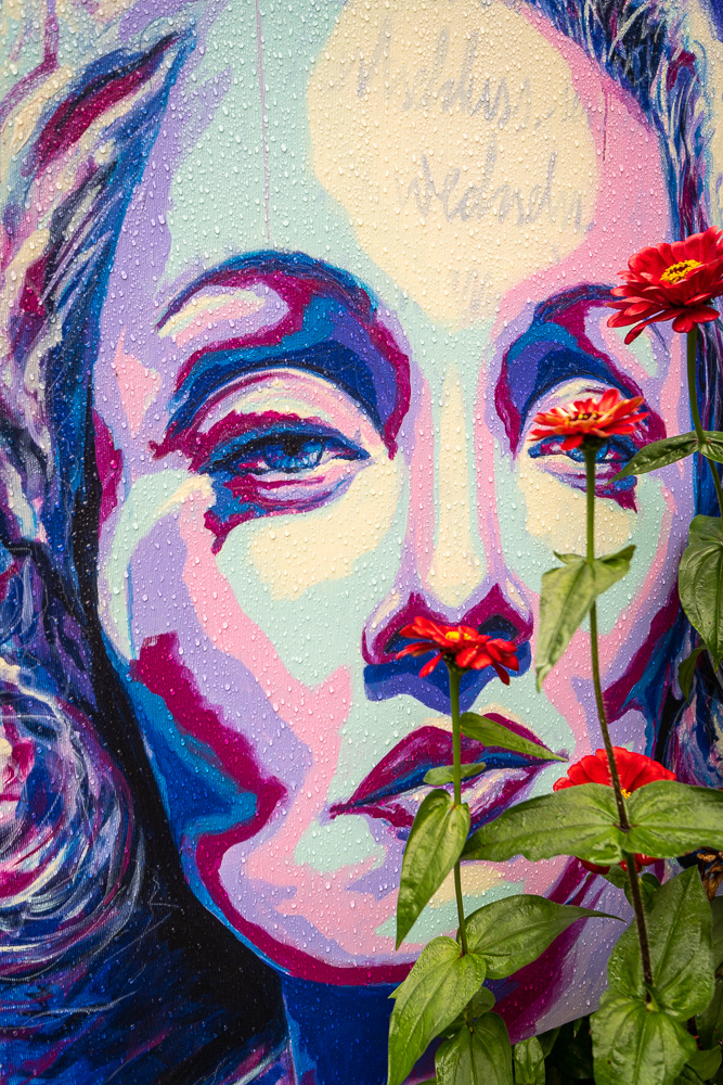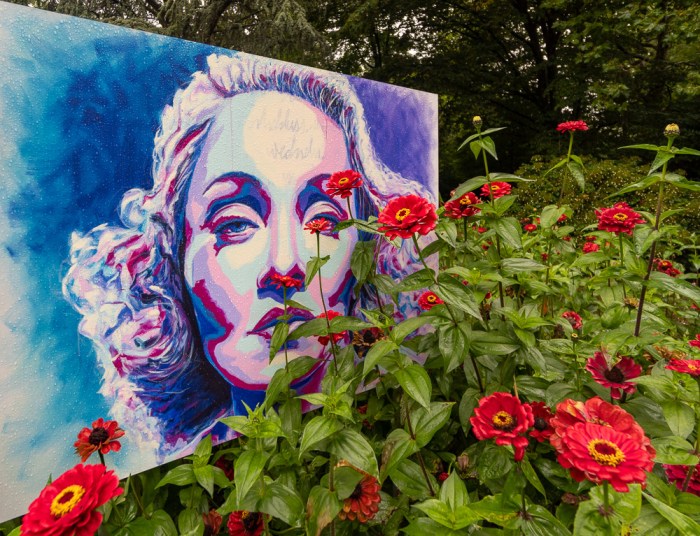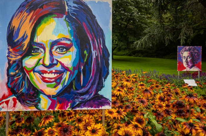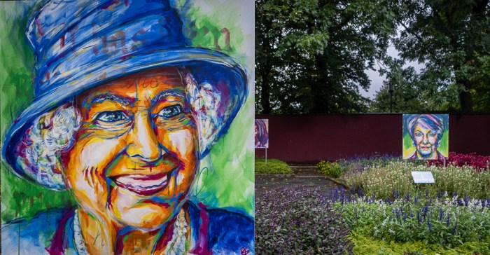 Das Gelände ist nicht nur schön gestaltet und bepflanzt, sondern auch sehr weitläufig und abwechslungsreich. Als wir uns der Freilicht-Ausstellung ‚Fearless women‘ nähern, wird uns das Glück hold. Regenpause! Die kommt mir gerade recht, denn hier und jetzt gibt es richtig was auf die Augen. Kamera raus!