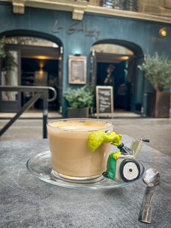 Zurück in die Stadt. Ich bin etwas geplättet von dem schwül-drückenden Mistral-Kopfschmerz-Wetter, obwohl es mit 24 Grad ja nicht zu warm ist. Das schreit nach einer Kaffeepause!
