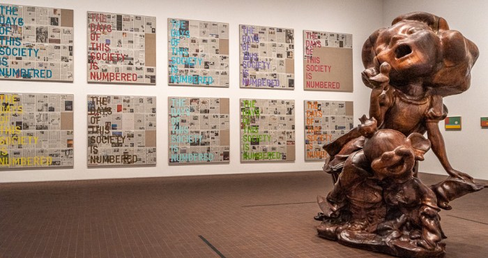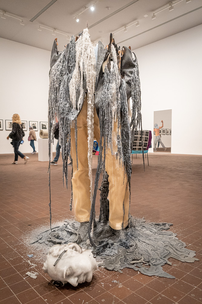 … bis hin zur Kollektion von Maja Hoffmann im Untergeschoss. Dort finden sich unter anderem brennende Skulpturen aus Kerzenwachs, deren größte davon genau ein Jahr nach Eröffnung dieser Ausstellung komplett heruntergebrannt sein soll.