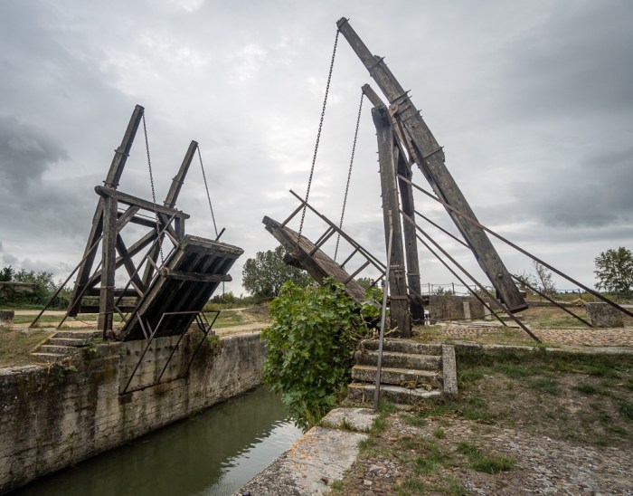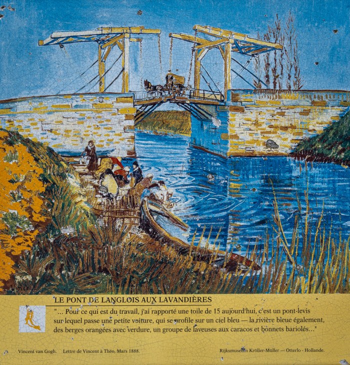 Nach dem Mittagessen unternehme ich einen Verdauungsspaziergang zur rund drei Kilometer außerhalb des Zentrums gelegenen Brücke von Langlois, auch als Van-Gogh-Brücke bekannt. Die über einen Schifffahrtskanal gebaute Klappbrücke mit zwei Brückenteilen faszinierte den Maler, weil sie ihn an die zahlreichen Kanäle in seiner niederländischen Heimat erinnerte. Van Gogh malte dieses Motiv mehr als zehn Mal! Die heutige Brücke ist jedoch nicht identisch mit derjenigen auf seinen Gemälden, sondern ein Nachbau der Brücke von Fos.